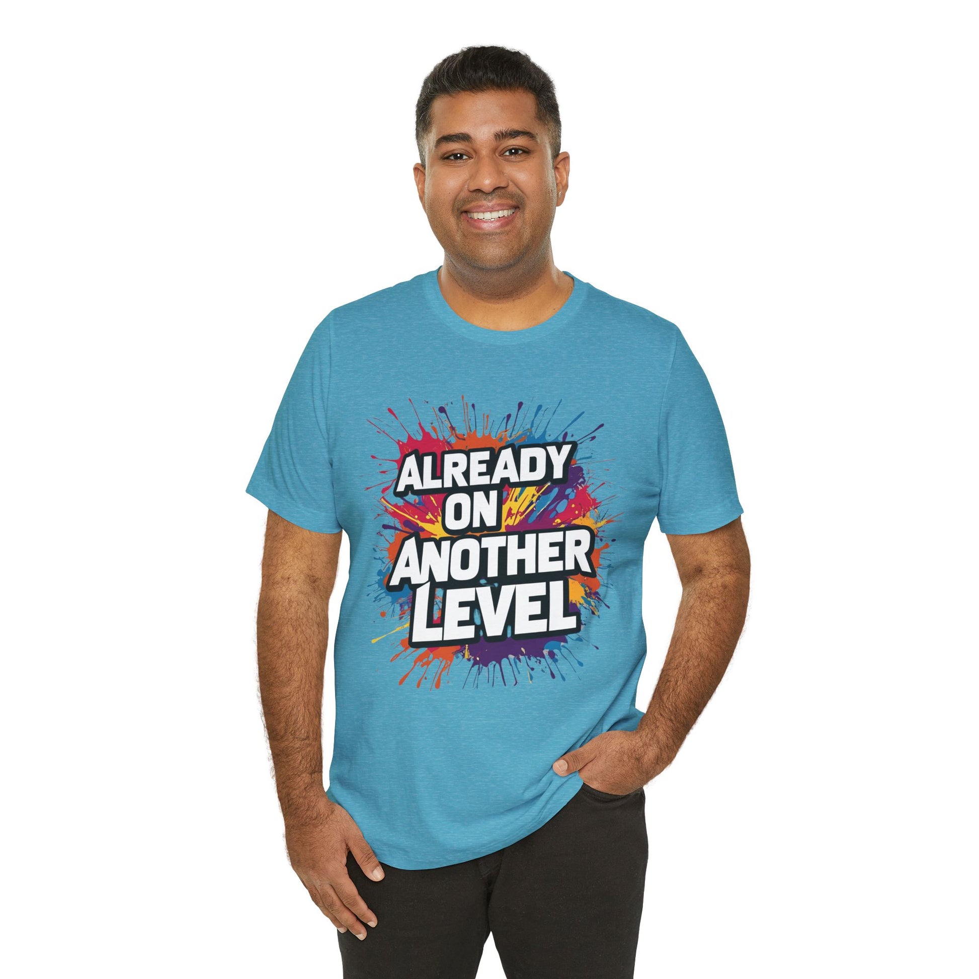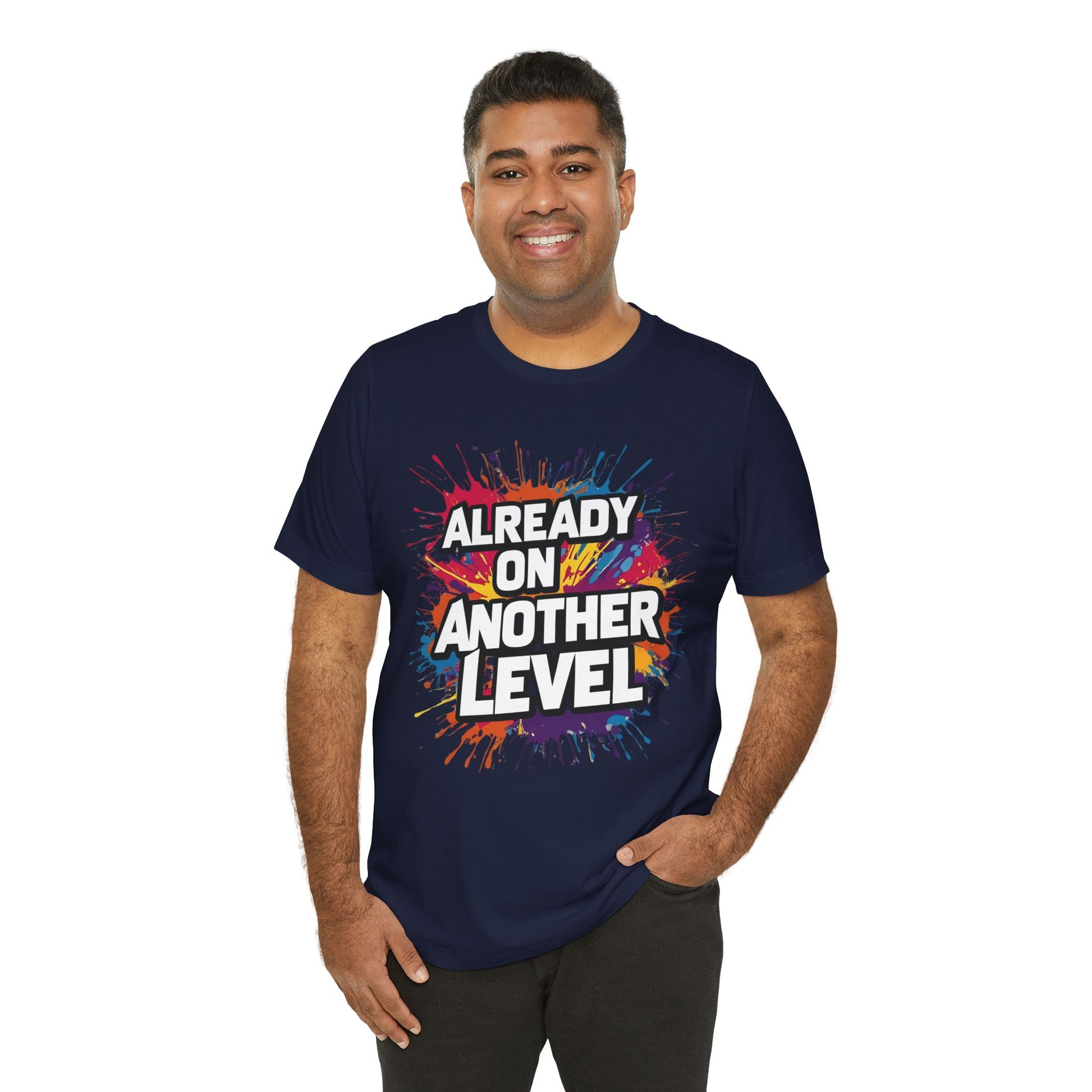 This vibrant and eye-catching motivational t-shirt celebrates your progress and achievements. Featuring a bold, colorful design with the empowering message "Already on Another Level," this tee is perfect for gym workouts, fitness training, or anyone who's leveling up in life.