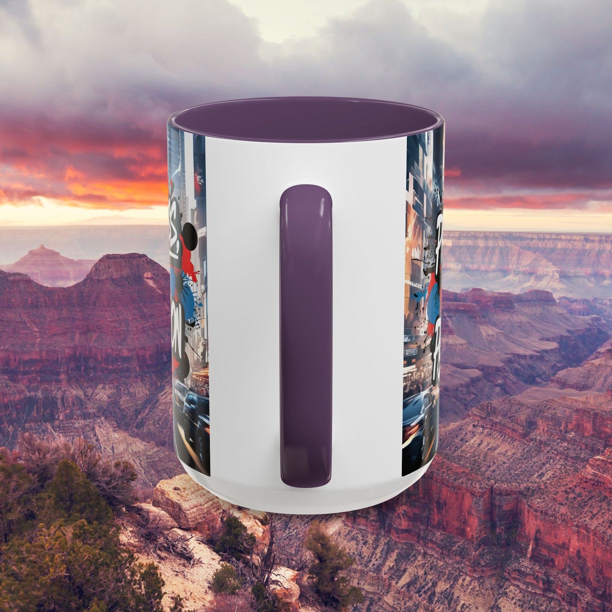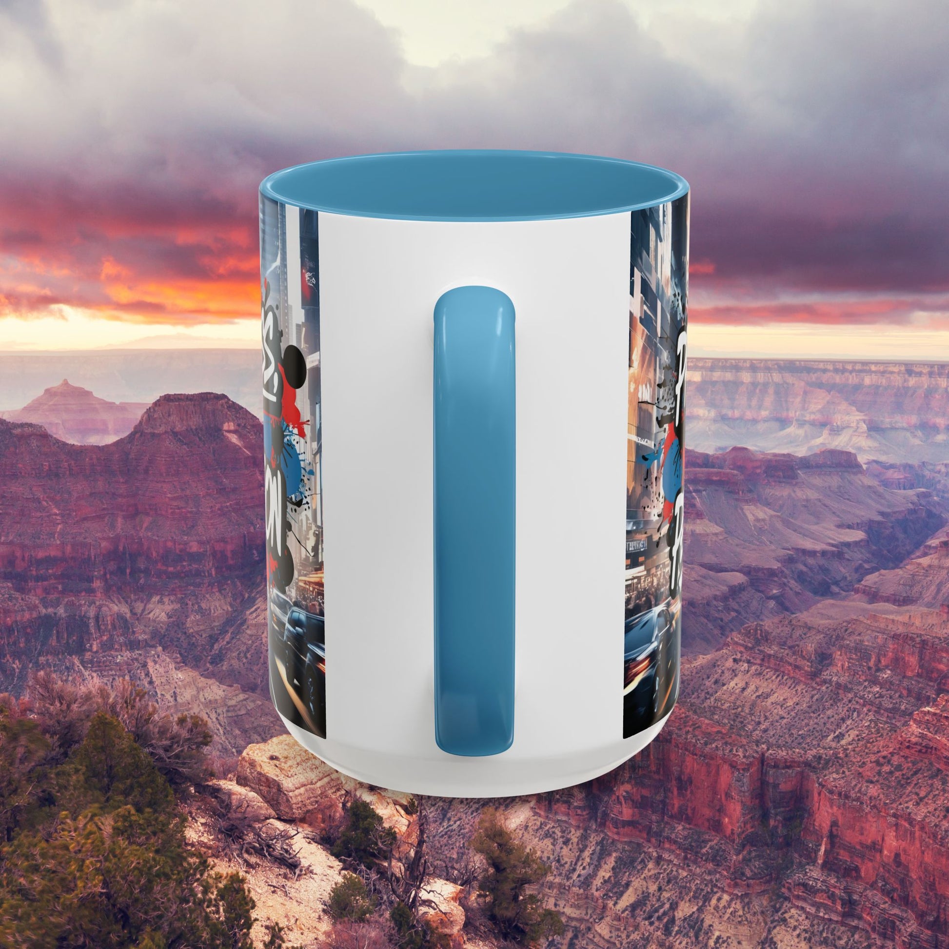 • White ceramic with vibrant graffiti-style design