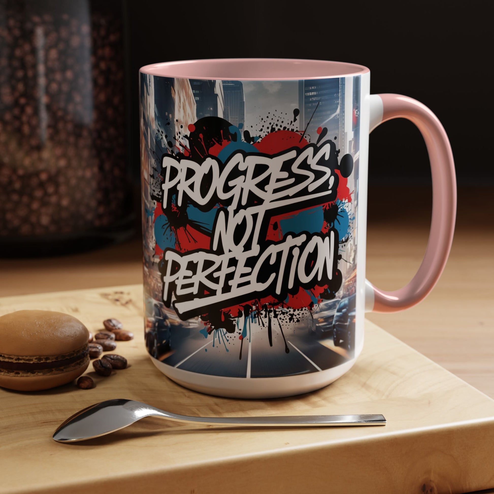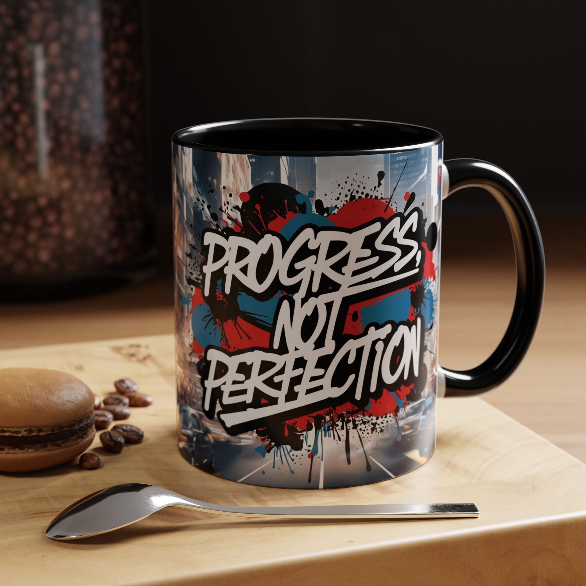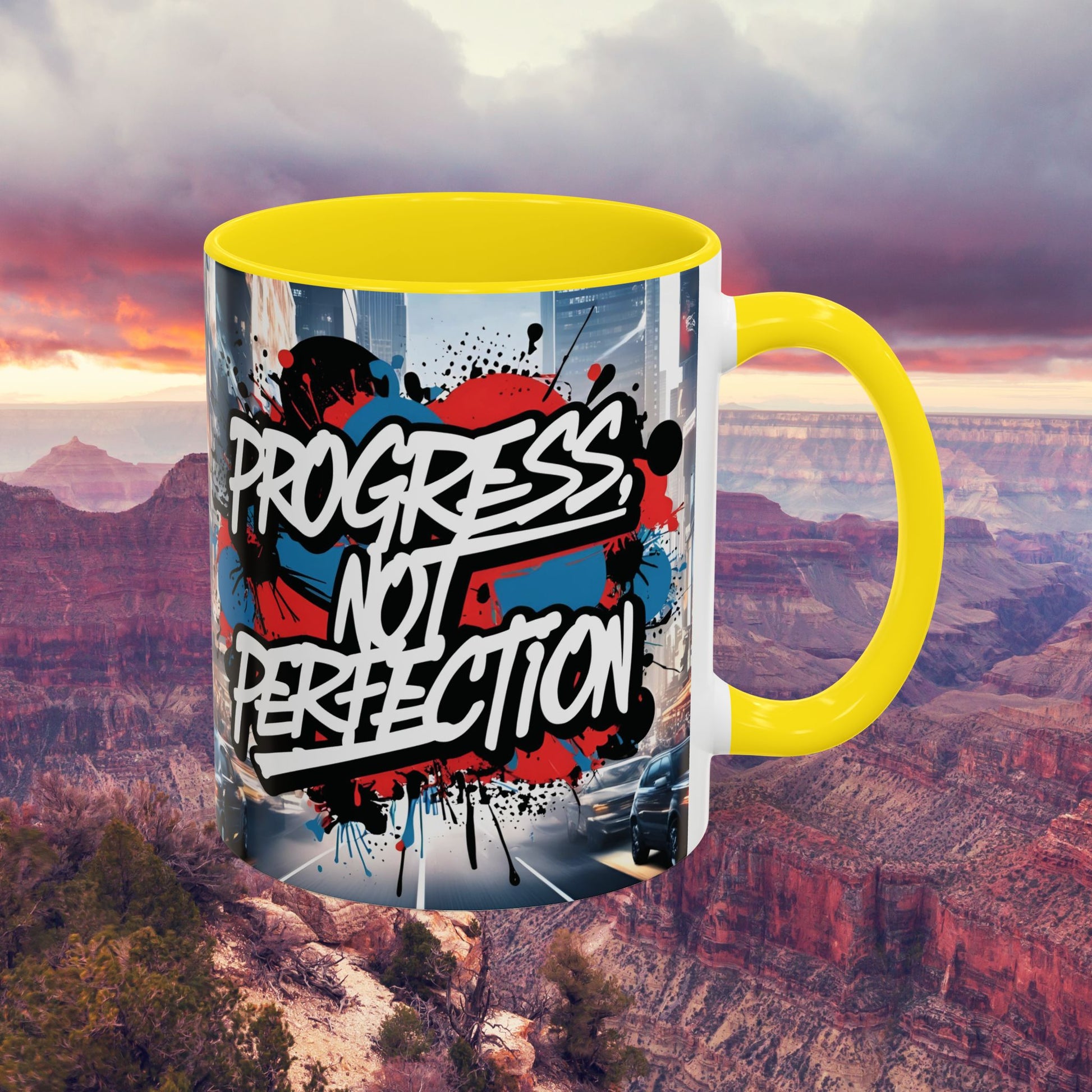 Progress Not Perfection! Graffiti Style Mug - Vibrant Design - 11oz/15oz - 8 Colors