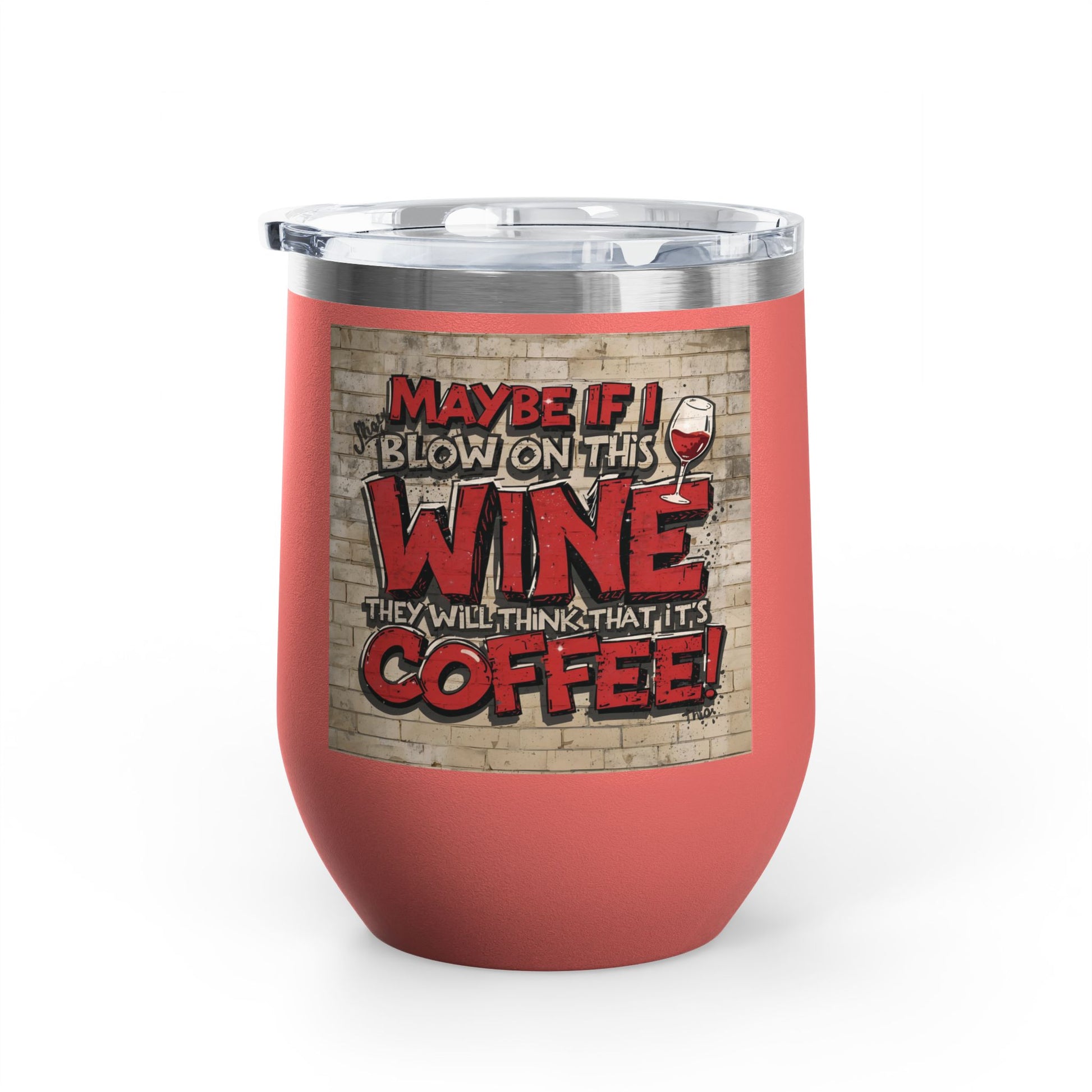 Introducing the perfect companion for your favorite drinks, this stylish, Maybe If I Blow On This Wine They Will Think That It's Coffee! Graphic Design Wine Tumbler is designed for the fun-loving wine enthusiast.
