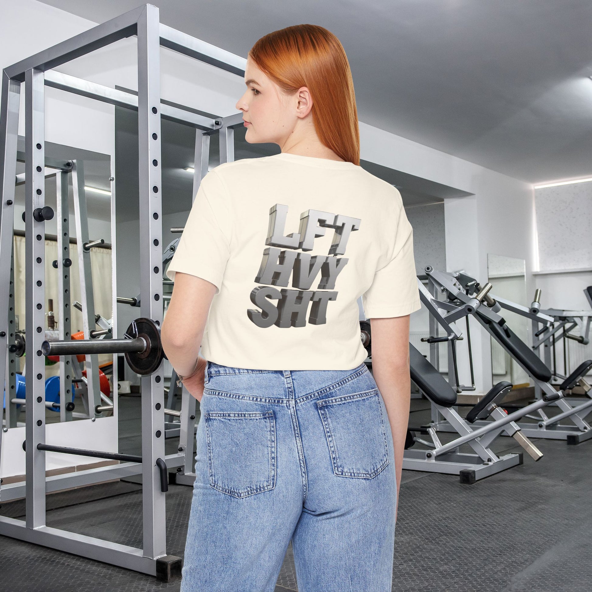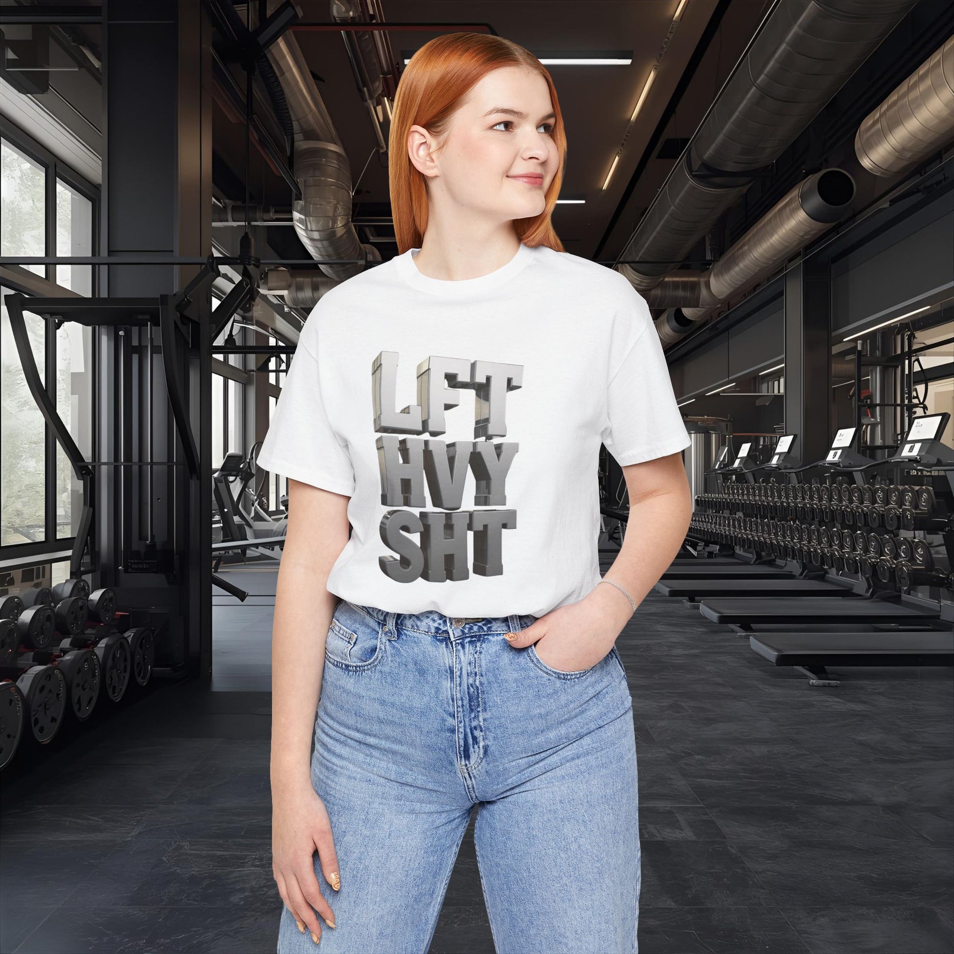 - Bold 3D "LFT HVY SHT" graphic design