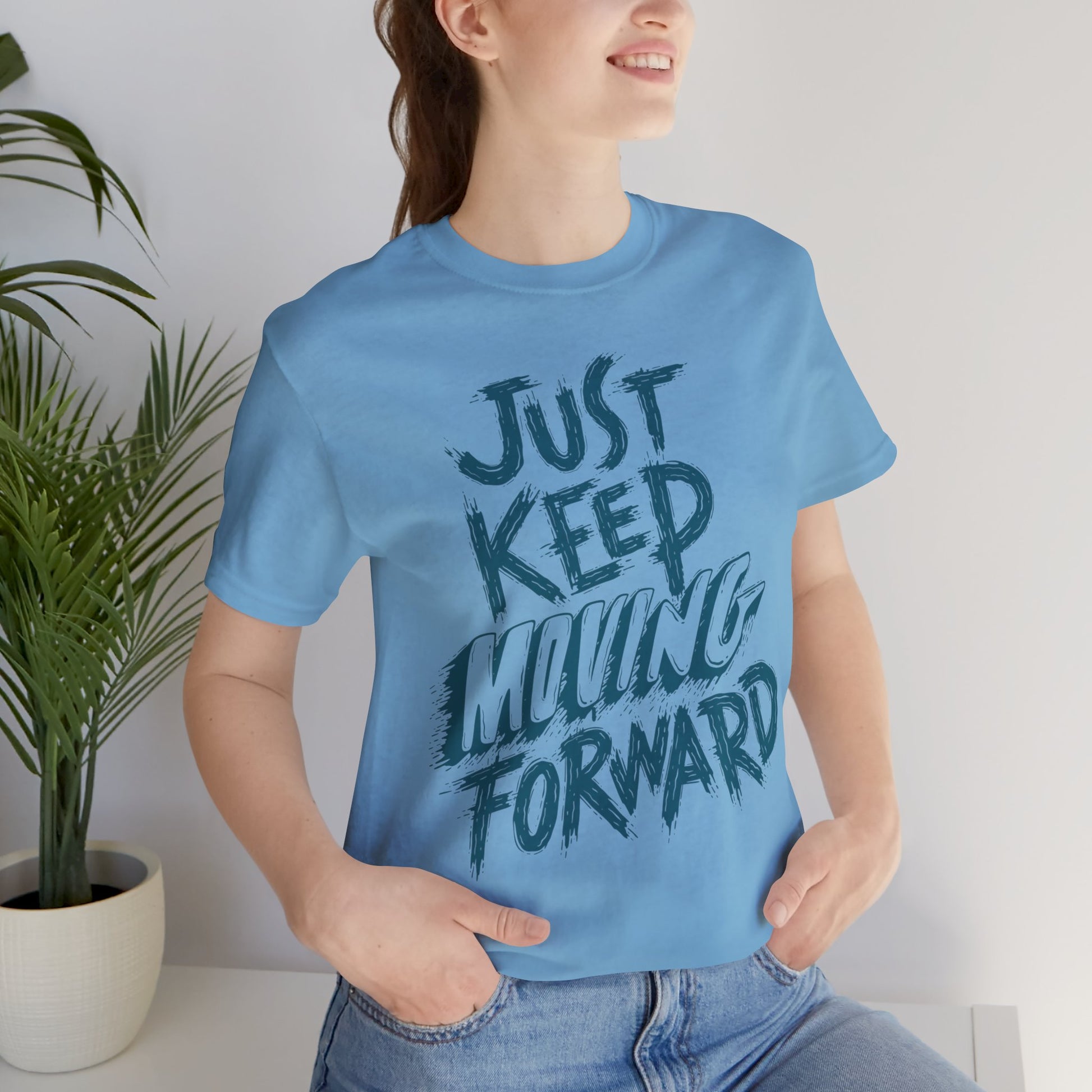 This inspiring motivational t-shirt delivers the encouragement you need to keep pushing through challenges. Featuring a powerful "Just Keep Moving Forward" message, this tee is perfect for gym workouts, daily motivation, mental health support, or anyone on a journey of self-improvement and growth.