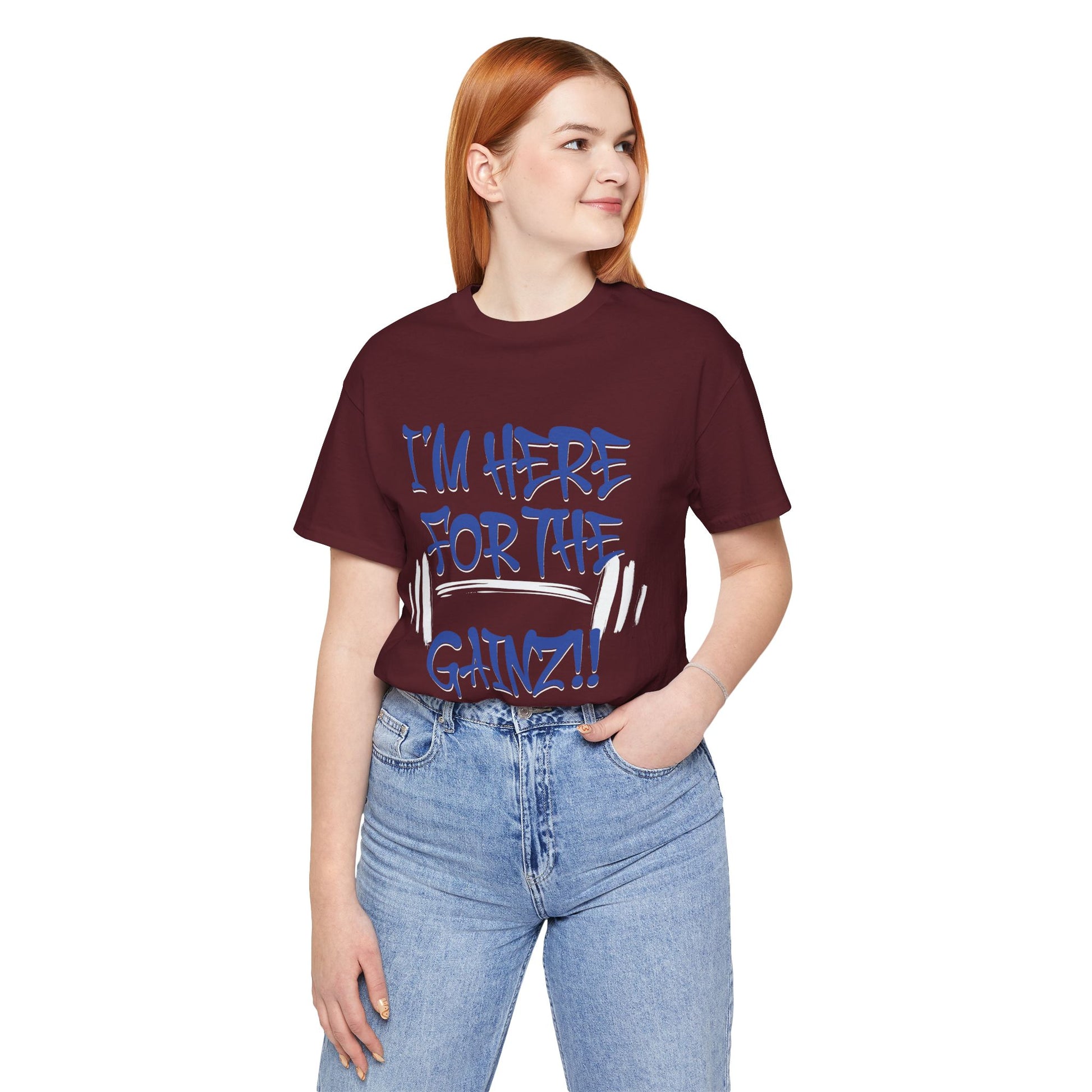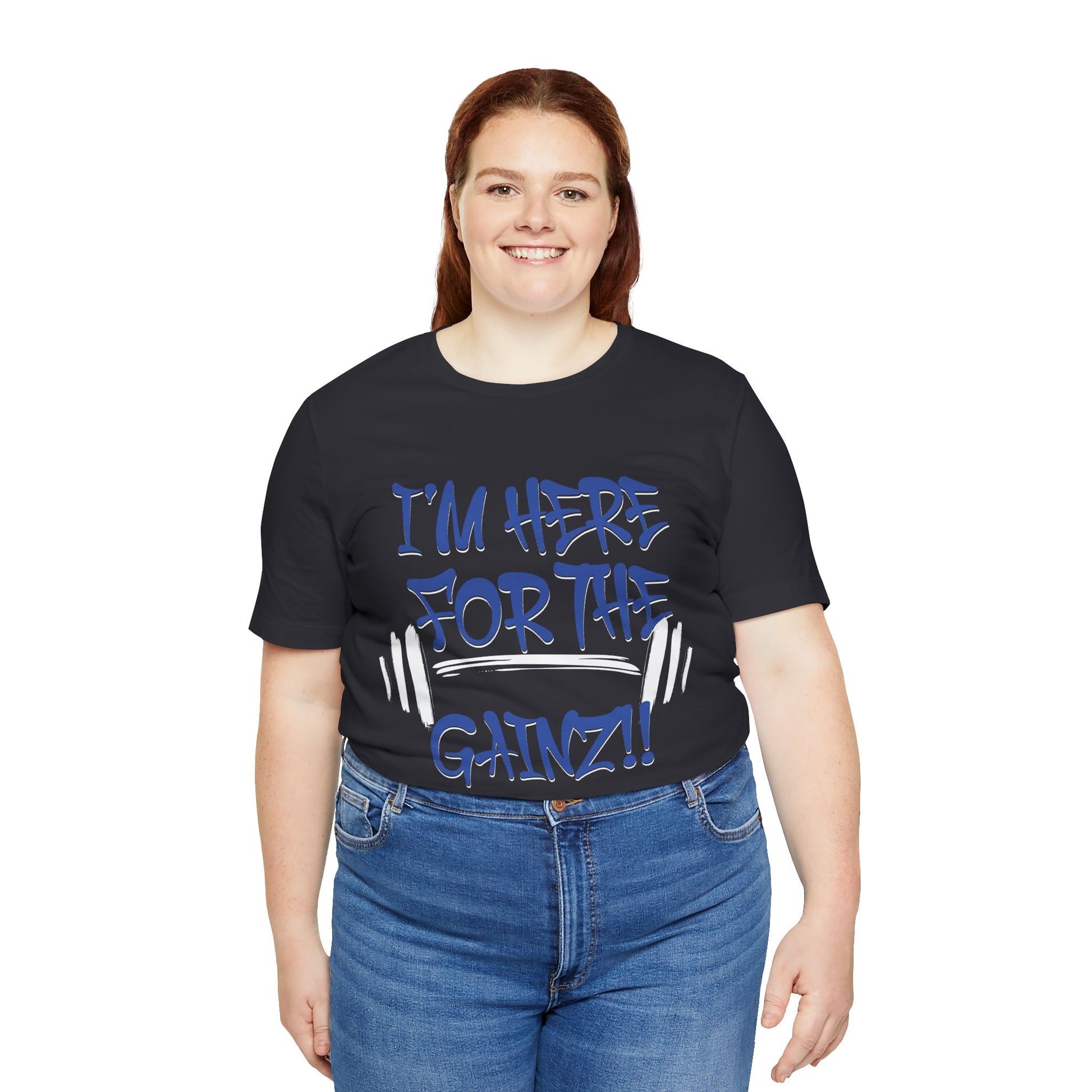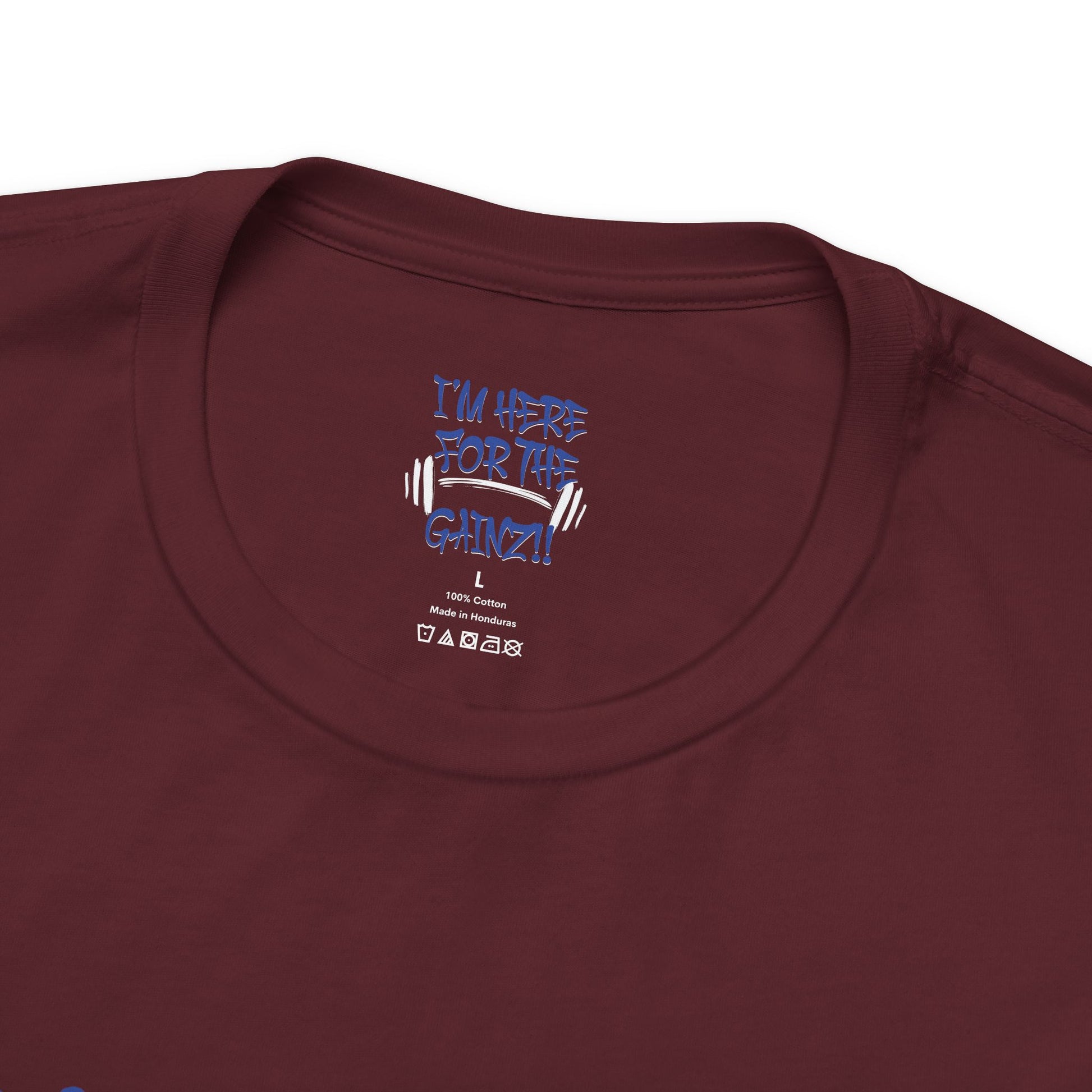 - Bold "I'm Here For The Gainz!!" graphic