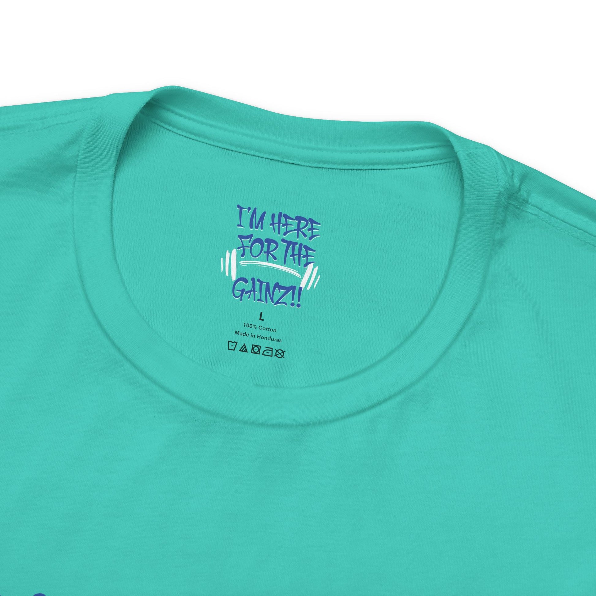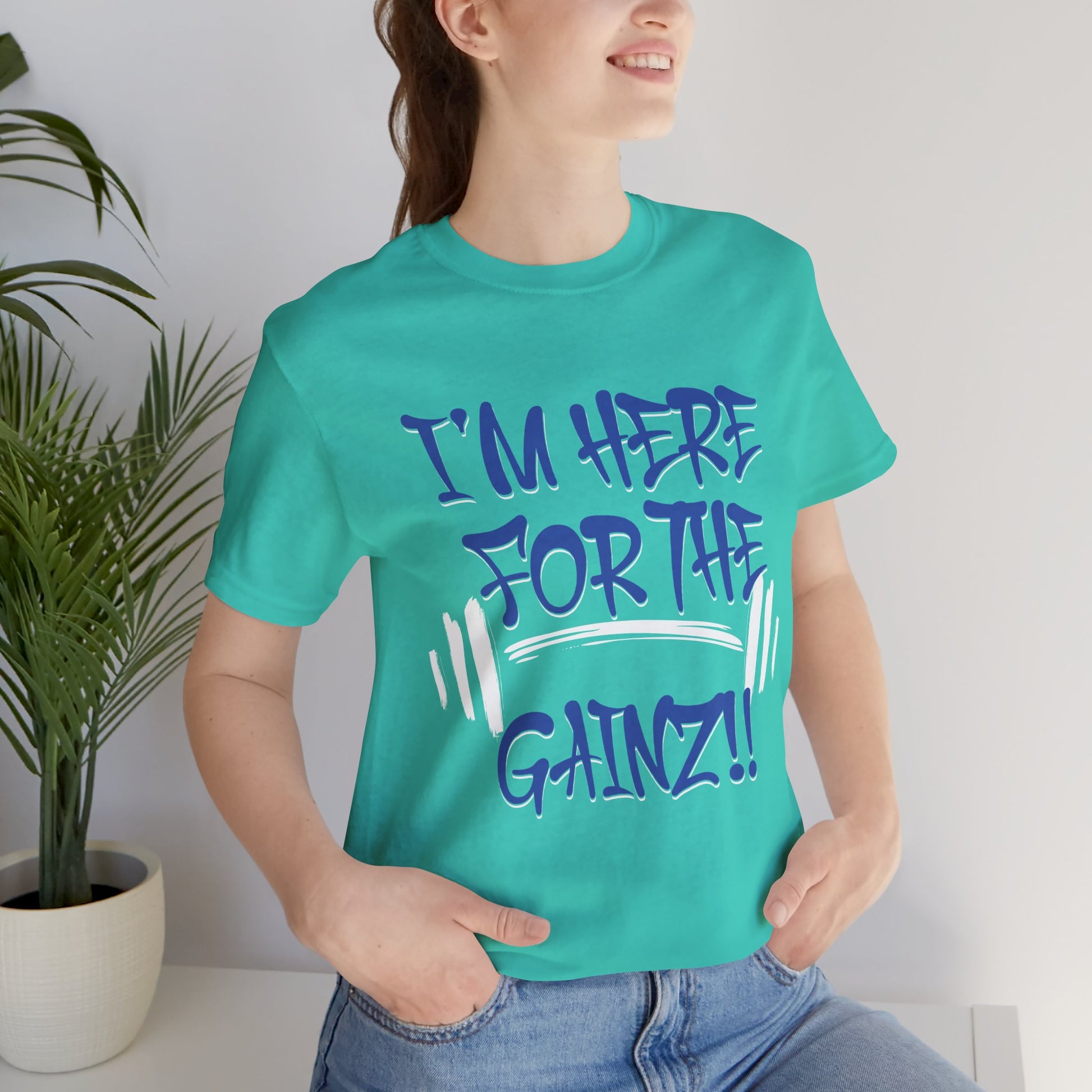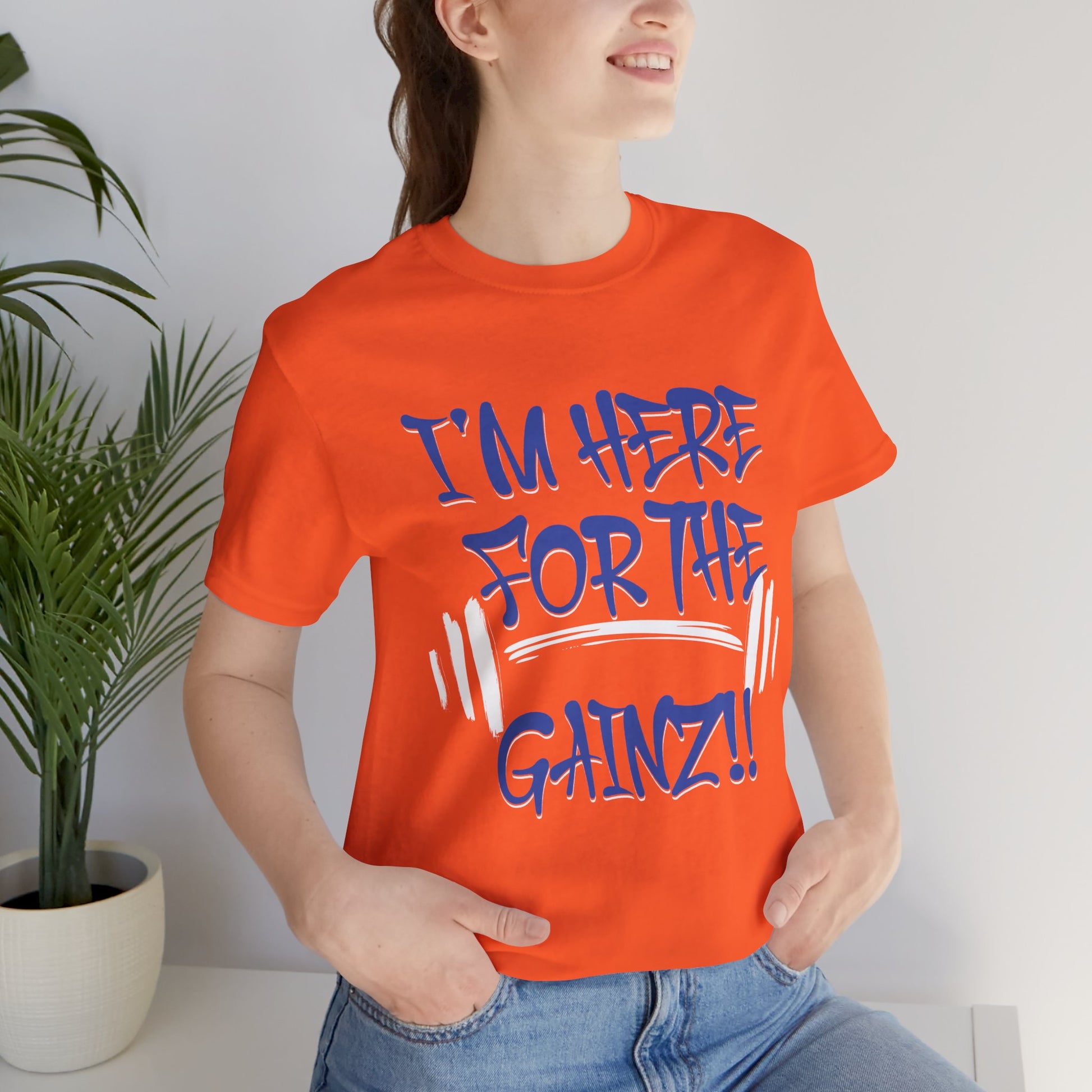 - Bold "I'm Here For The Gainz!!" graphic